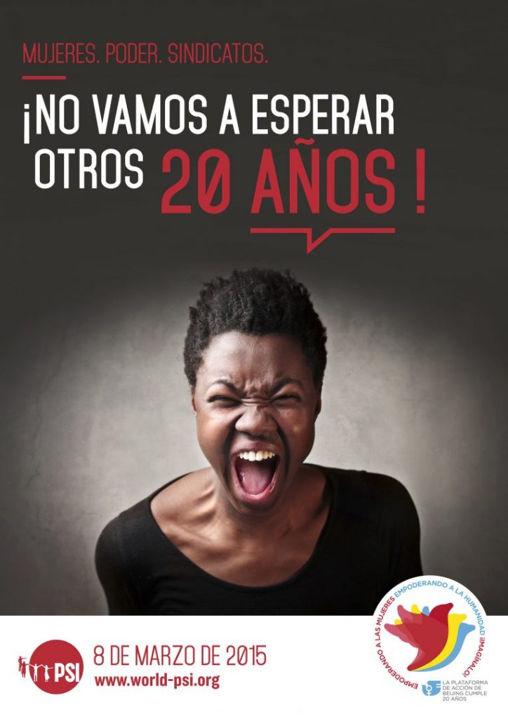 A Internacional de Serviços Públicos (PSI), a Federação Europeia dos Sindicatos dos Serviços Públicos (FESSP) e o movimento sindical internacional exige uma mudança ousada por parte dos líderes políticos, um movimento de inatividade para a realização de investimentos com objetivos e definidos reformas trabalhistas destinadas a criar um mercado de trabalho inclusivo para garantir a igualdade de acesso das mulheres ao trabalho decente e produtivo, a sua representação na tomada de decisões e sua capacidade de acesso aos serviços públicos e educação de qualidade.