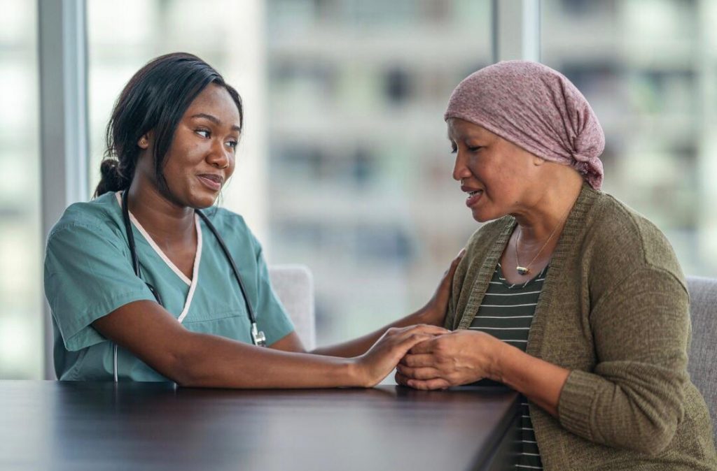 A equipe de Enfermagem é imprescindível no processo de cuidar dos pacientes oncológicos, envolvendo uma interação de conhecimento e valores a fim de buscar uma relação dinâmica e proporcionar o máximo conforto. Os enfermeiros devem estar preparados para cuidar dos pacientes, acolhendo-os através da escuta de sentimentos e vivências, amenizando o sofrimento de conviver com a doença e com os efeitos do tratamento (SALIMENA et al, 2003).