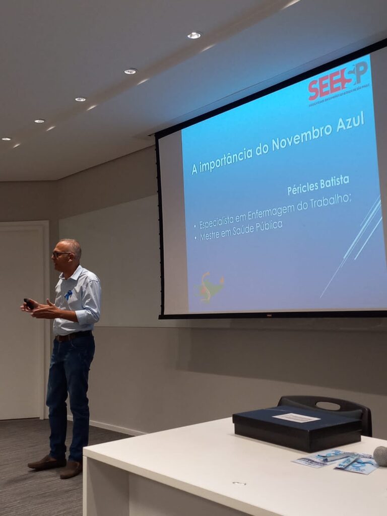 O vice-presidente do Sindicato dos Enfermeiros do Estado de São Paulo, Péricles Batista< proferiu palestra nesta terça, 22/11, em comemoração ao Novembro Azul, mês da campanha de prevenção e conscientização do câncer de próstata.