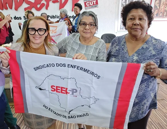 O evento foi aberto a todas as centrais sindicais e ramos convidados. O SEESP esteve presente com a representação das diretoras Ana Firmino (responsável pela Pasta da Mulher Trabalhadora), Estela Cristina (secretária de Políticas Sociais e Formação) e Ivonildes Ferreira (responsável pela Pasta de Assuntos de Aposentados).
