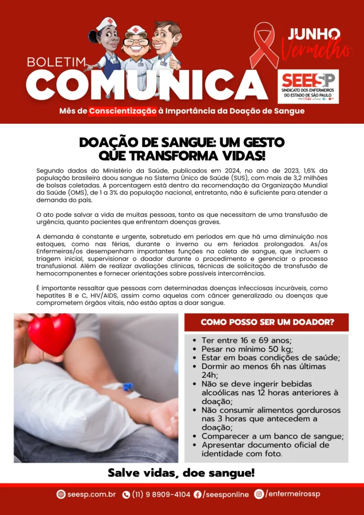 Embora o Brasil tenha atingido a recomendação da OMS com 1,6% da população doando sangue em 2023 — totalizando mais de 3,2 milhões de bolsas —, a campanha “Junho Vermelho” alerta que esse volume ainda é insuficiente para atender à demanda nacional. O mês de conscientização ganha ainda mais relevância diante da chegada do inverno e de feriados prolongados, períodos críticos em que os estoques costumam diminuir, colocando em risco o atendimento a urgências e pacientes com doenças graves.