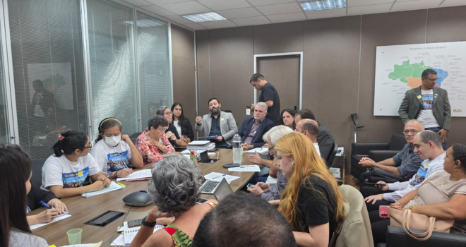 Hoje, 24/03, acontece a 4ª reunião da Mesa Nacional de Negociação do Acordo Coletivo de Trabalho (ACT) da Empresa Brasileira de Serviços Hospitalares (EBSERH). Durante o encontro, foram discutidas as cláusulas econômicas, além da apresentação de devolutivas relacionadas aos pontos já debatidos nas rodadas anteriores de negociação. Estiveram presentes a presidente da Federação Nacional dos […]