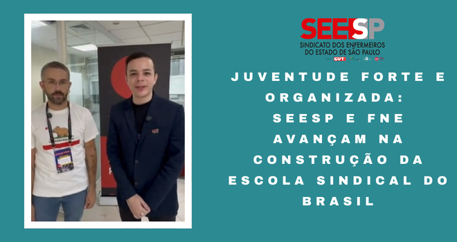 Finalizando mais um evento, o Sindicato dos Enfermeiros do Estado de São Paulo (SEESP), representado pelo diretor Patrick Perosso, participou do Lançamento da Escola Sindical para Jovens do Brasil. A Federação Nacional dos Enfermeiros (FNE) também marcou presença, representada por Rangel Fernandes. A grande novidade é que ambos assumiram o